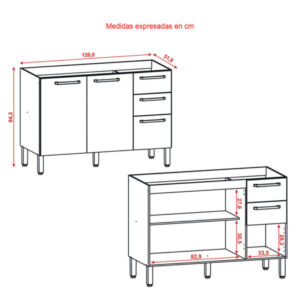 Cocina Gazania 120CM 6 Puertas 2 Cajones