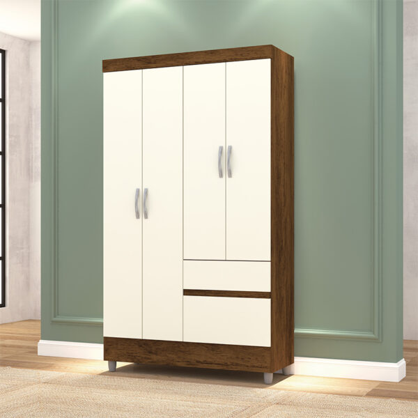 El Clóset 4 puertas con 2 cajones Bonic incluye 1 perchero ideal para el aprovechamiento del espacio. Sus 4 puertas con bisagras metálicas y sus 2 cajones con rieles metálicos y sin manijas se integran como solución funcional para el almacenaje en general aportando una solución efectiva al orden.