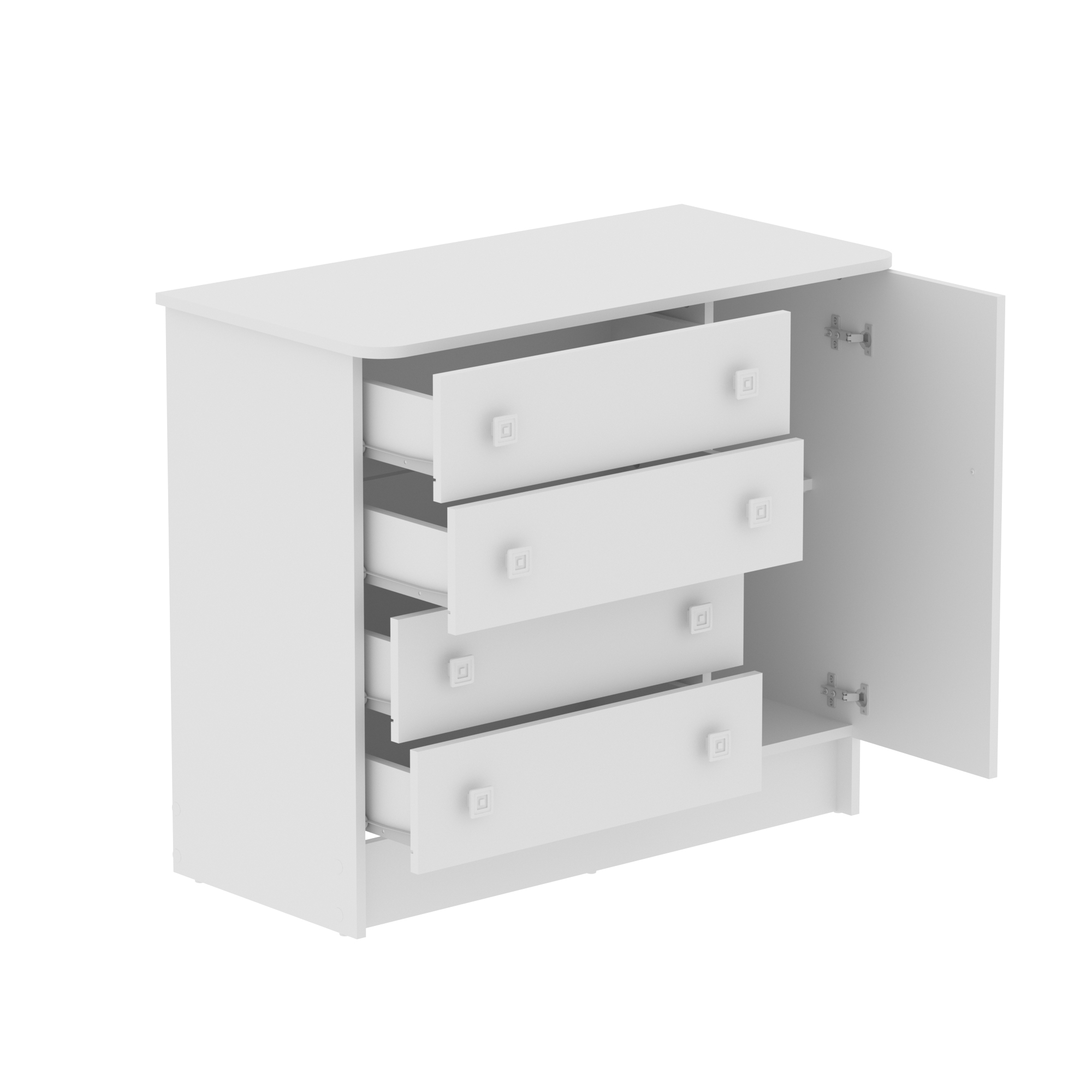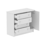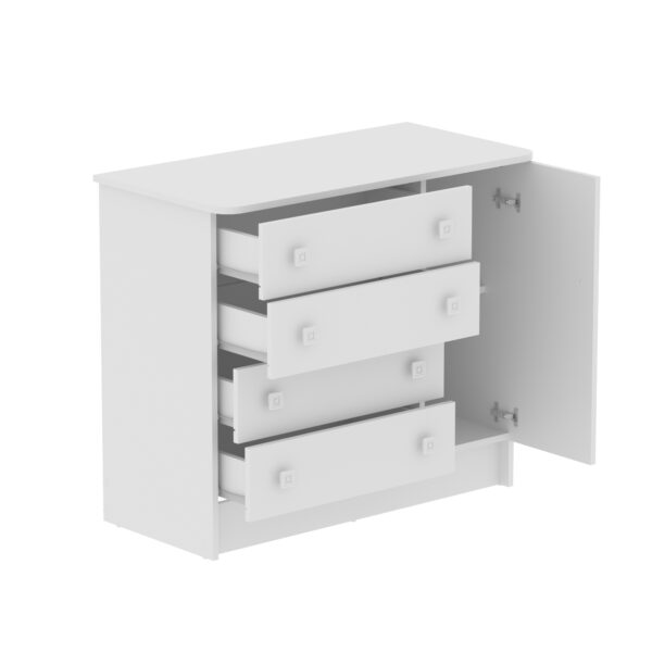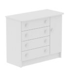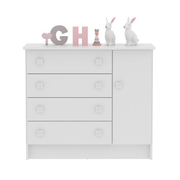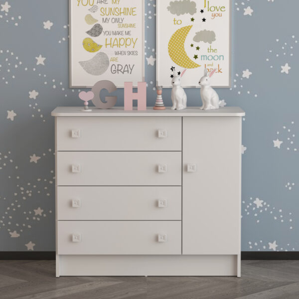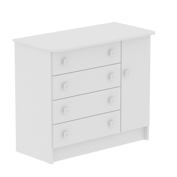 La Cómoda San Pablo tiene un diseño único que le permite adaptarse a diferentes espacios del hogar.Tiene cuatro cajones y una puerta para acomodar objetos decorativos y de uso diario.Ha sido producido con aglomerado de madera que garantiza mayor resistencia y durabilidad.
