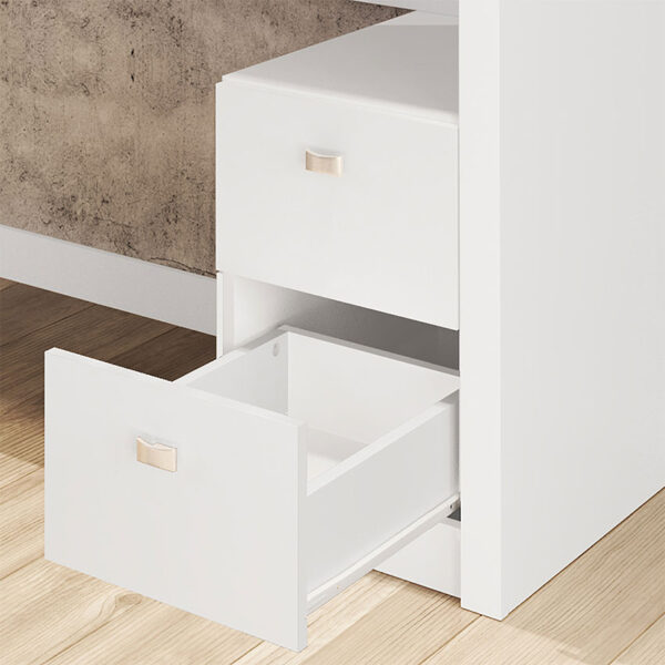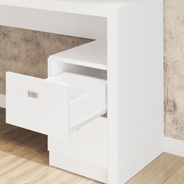 El Escritorio Santorini cuenta con dos cajones en los que se pueden organizar diferentes herramientas de trabajo. Hará cualquier espacio de trabajo un lugar cómodo y productivo.