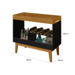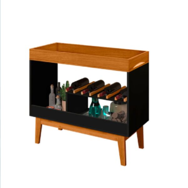 El bar Bora cuenta con una bandeja superior (no removible) y un compartimiento en la parte inferior que permite organizar diferentes utensilios decorativos y de uso diario.