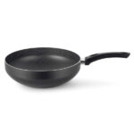 El sartén wok superior está compuesto con aluminio de 99 7 de pureza revestimiento interno con 7 capas antiadherentes y baquelita antitérmica de 28 cm de diámetro. Este sartén cuenta con capacidad de 4 30 litros.